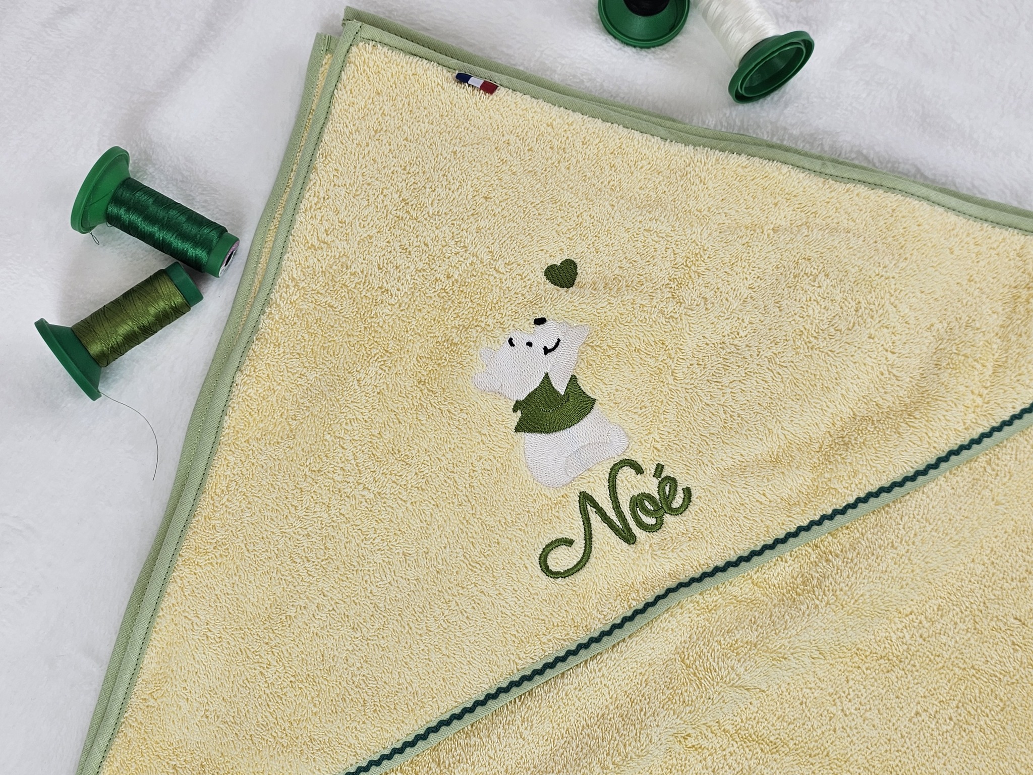 Photo non contractuelle. La personnalisation rend chaque pièce unique : les coloris, les tissus et les dimensions des broderies peuvent donc varier.