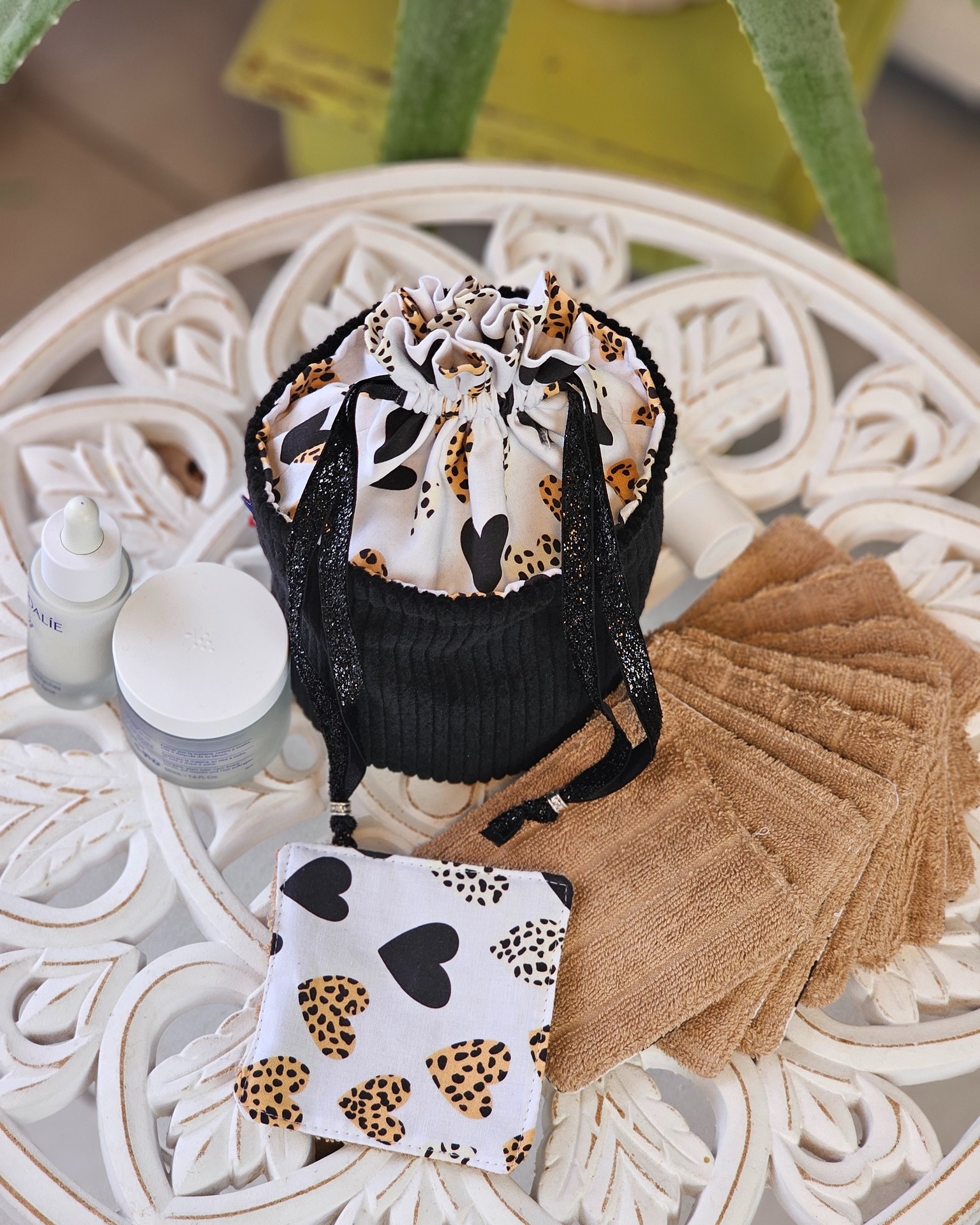 Pochon cœurs + 10 cotons réutilisables